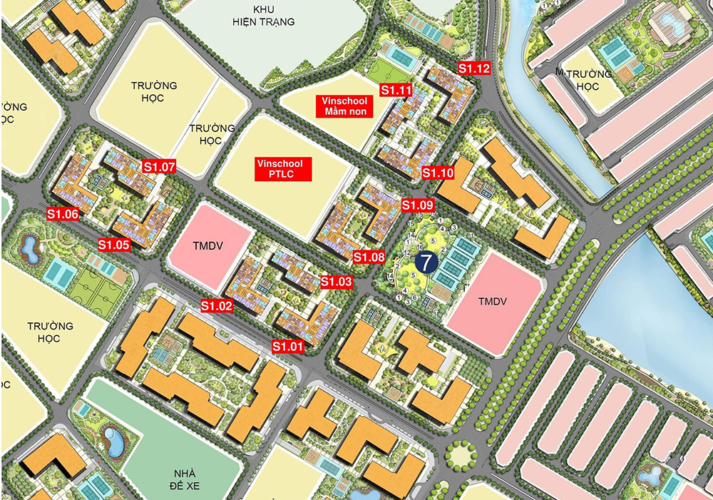 - Khoảng: 62 ha công viên và cây xanh | Mật độ tb xây dựng: 19.2 %